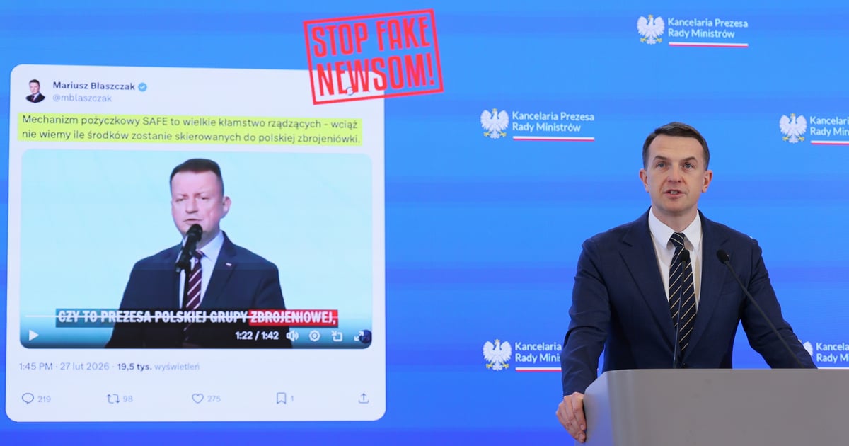 Nieco gorzej poszło rzecznikowi z fact-checkiem wypowiedzi polityków o SAFE. Adam Szłapka wspomniał o poście opublikowanym 27 lutego na X przez Mariusza Błaszczaka. "Mechanizm pożyczkowy SAFE to wielkie kłamstwo rządzących - wciąż nie wiemy ile środków zostanie skierowanych do polskiej zbrojeniówki" – napisał wówczas poseł PiS.