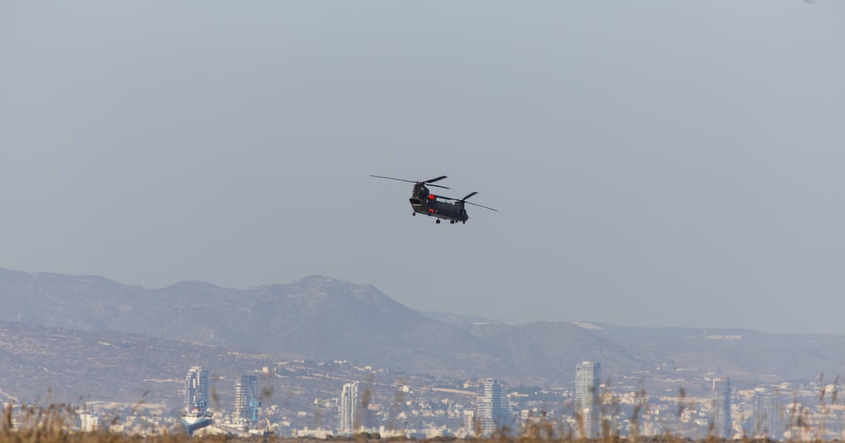 Chinook lecący nad Akrotiri. (fot. Shutterstock / Shutterstock)